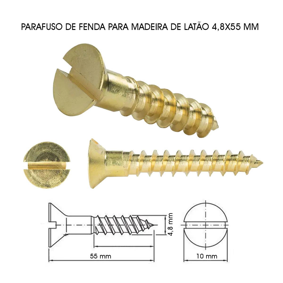 PARAFUSO MADEIRA FENDA LATÃO 4,8X55-25 PÇ