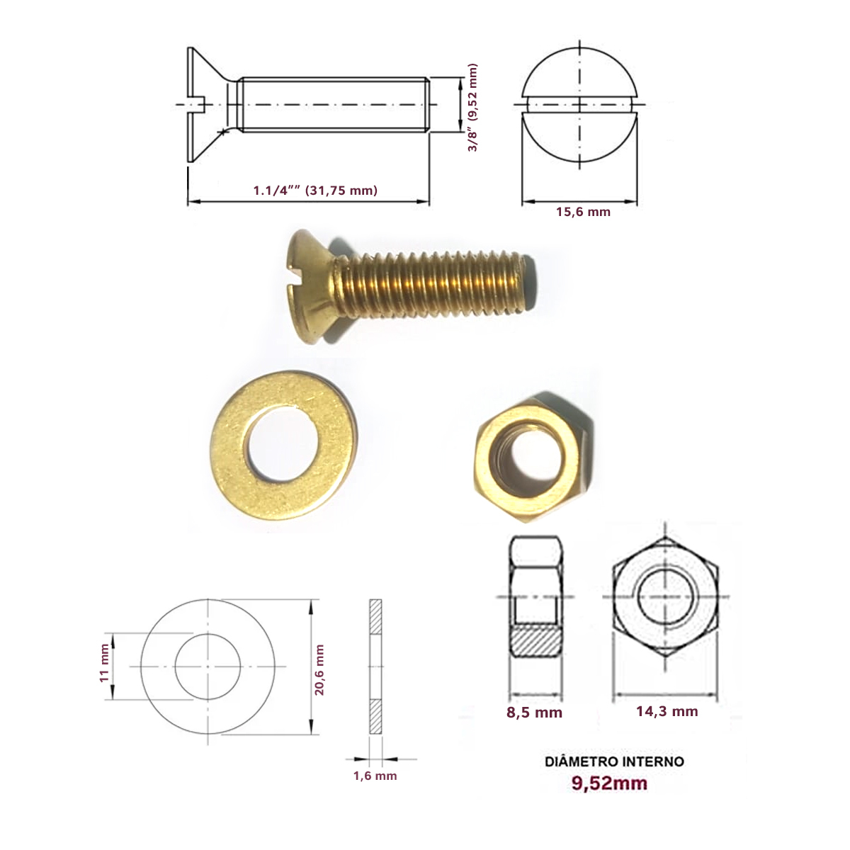 PARAFUSO LATÃO MÁQUINA CAB. CHATA FENDA 3/8x1.1/4-25 PÇ