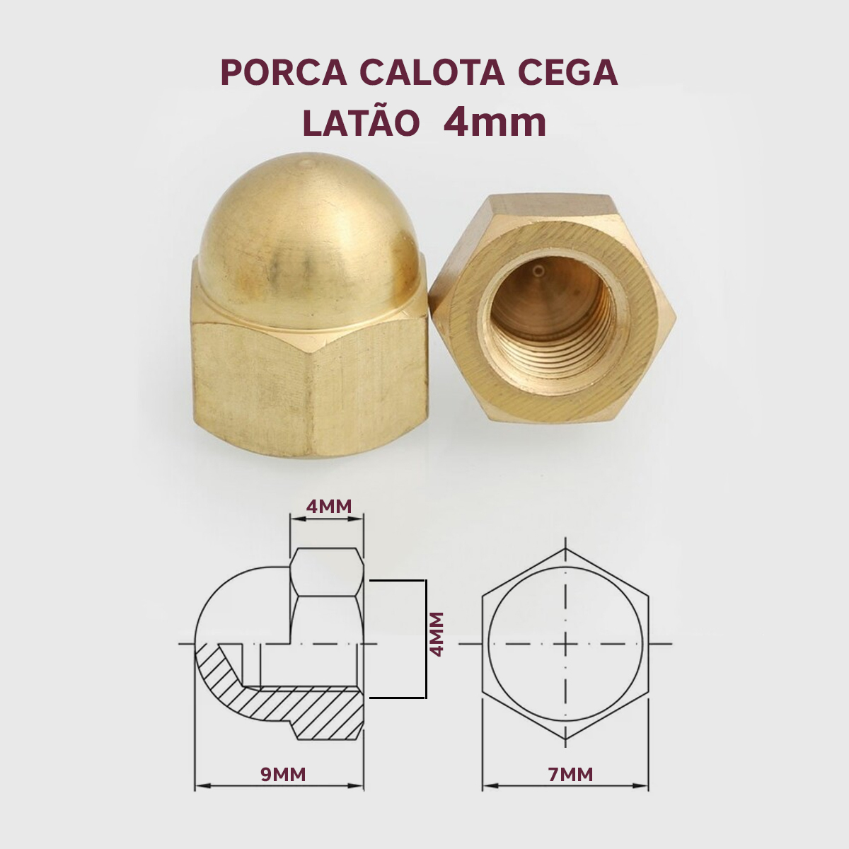 PORCA CALOTA LATÃO 4MM-12PÇCód. 167970