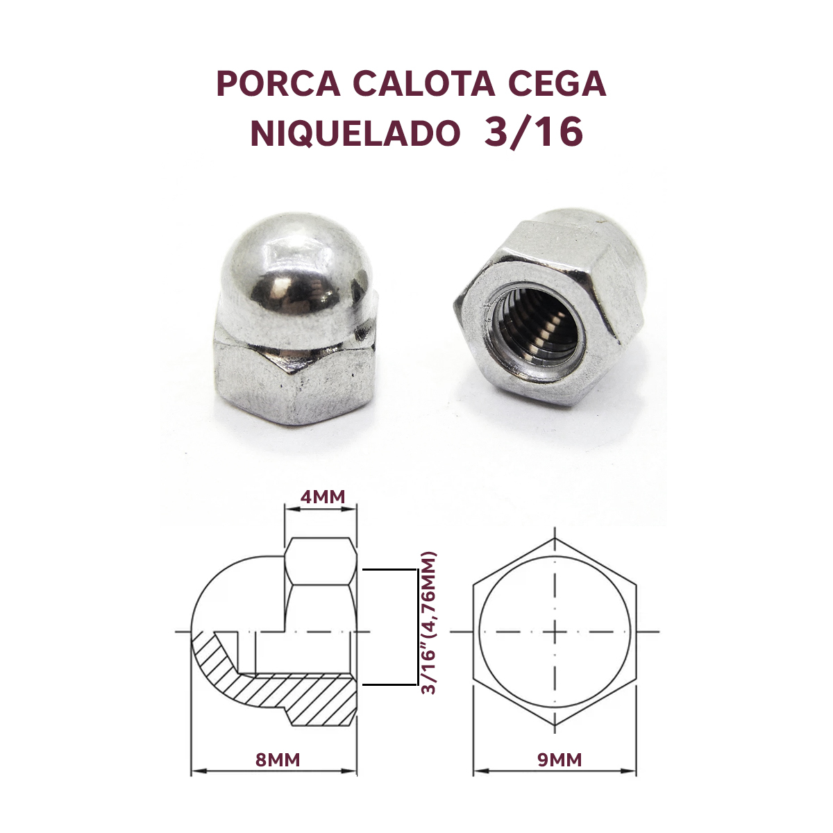 PORCA CALOTA 3/16 NIQUELADO-12PÇCód. 167956