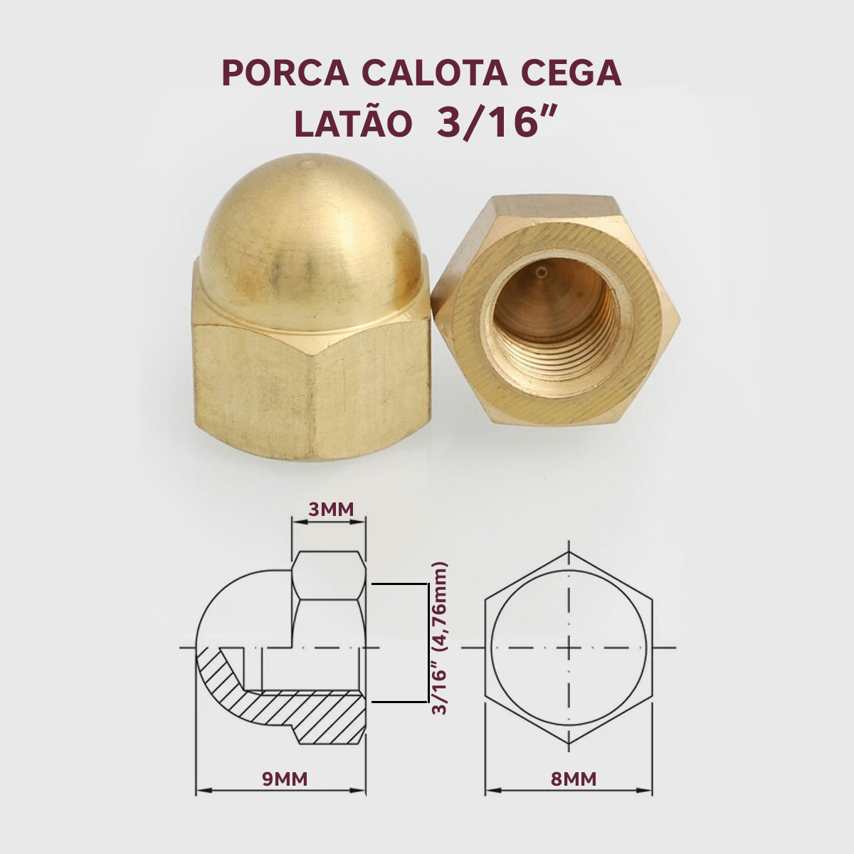 PORCA CALOTA LATÃO 3/16-12PÇCód. 168021