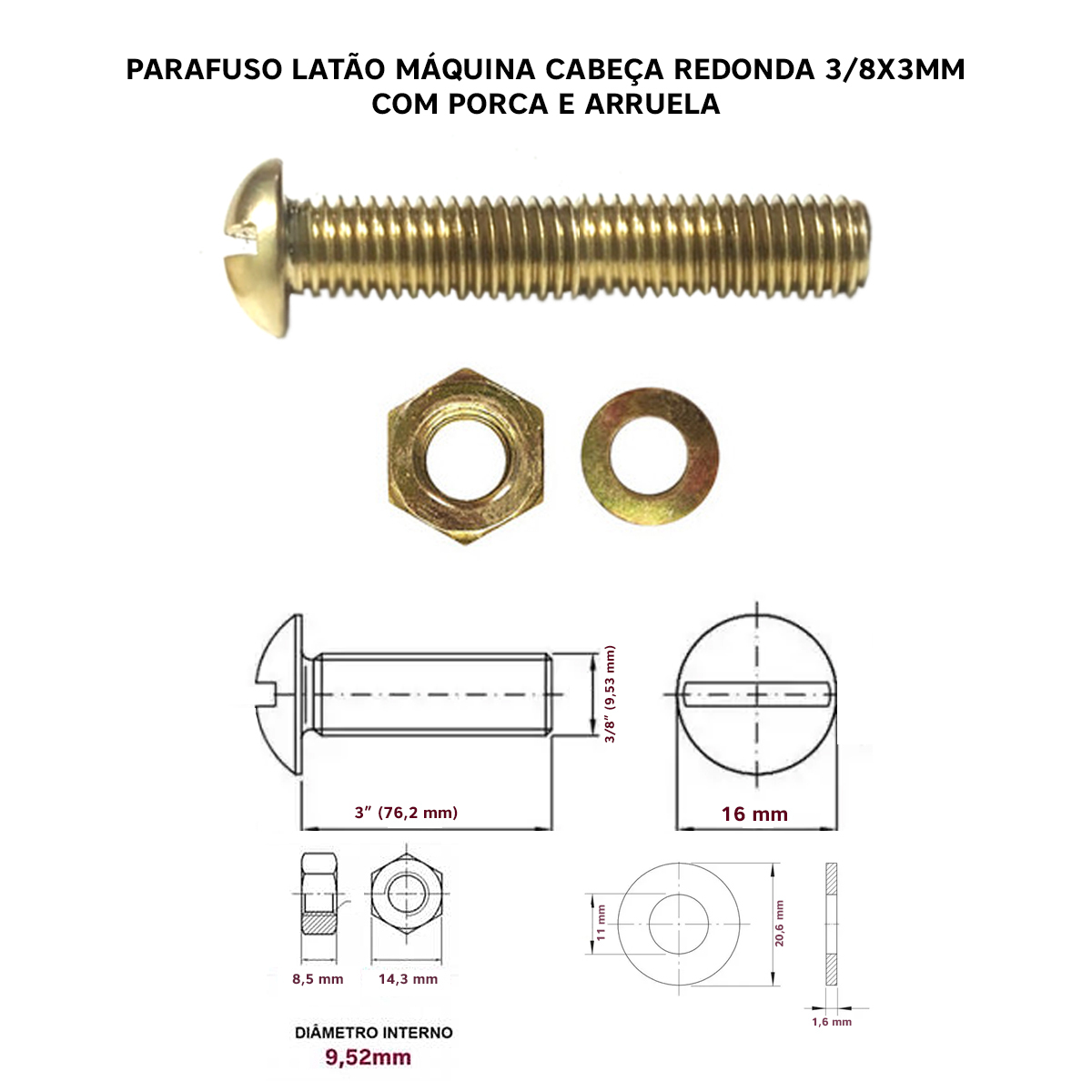 PARAFUSO LATÃO MÁQUINA CAB. RED. FENDA 3/8x3-04 PÇ
