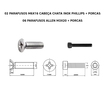 Norma: usualmente DIN 965 ou equivalente para parafusos cabeça chata Phillips em inox.