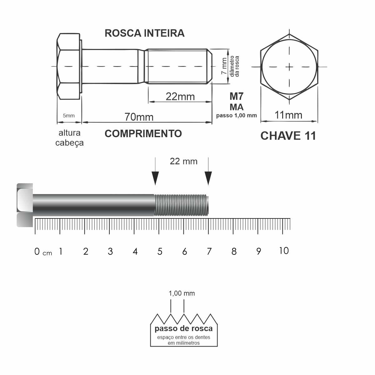Parafuso Sextado Aço 8.8 M7 – Rosca 1,00 mm