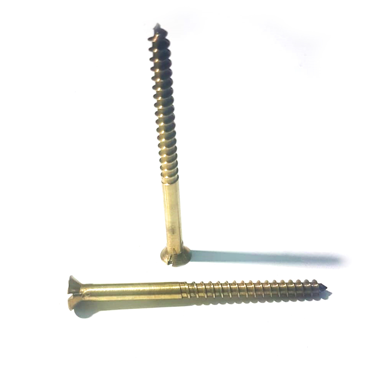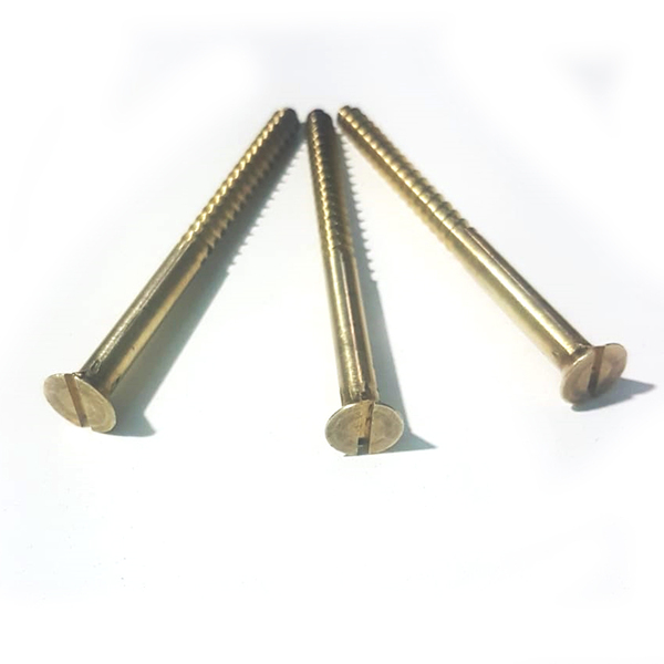 Material: Latão maciço. Cabeça: Chata com fenda reta.