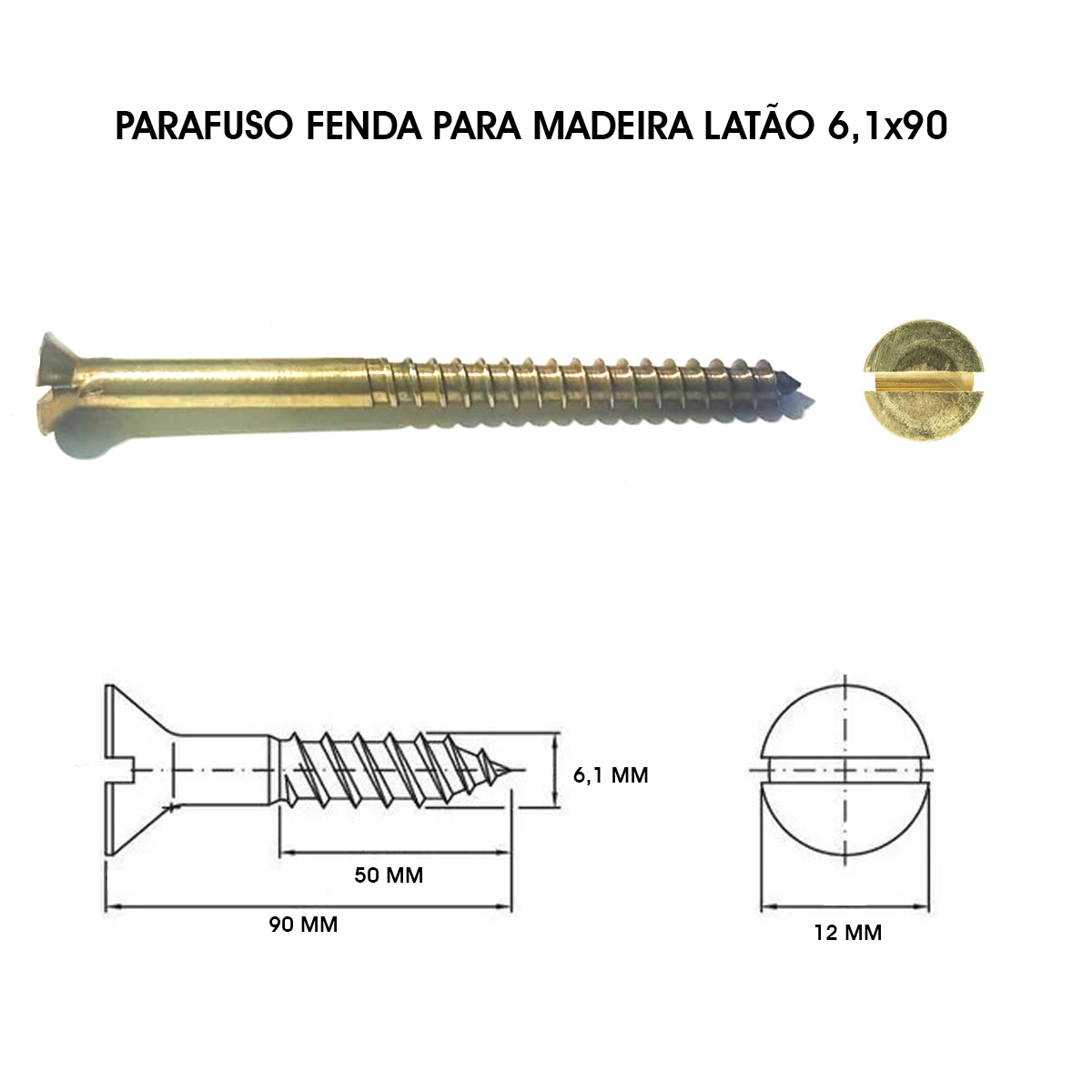 PARAFUSO LATÃO PARA MADEIRA FENDA 6,1X90