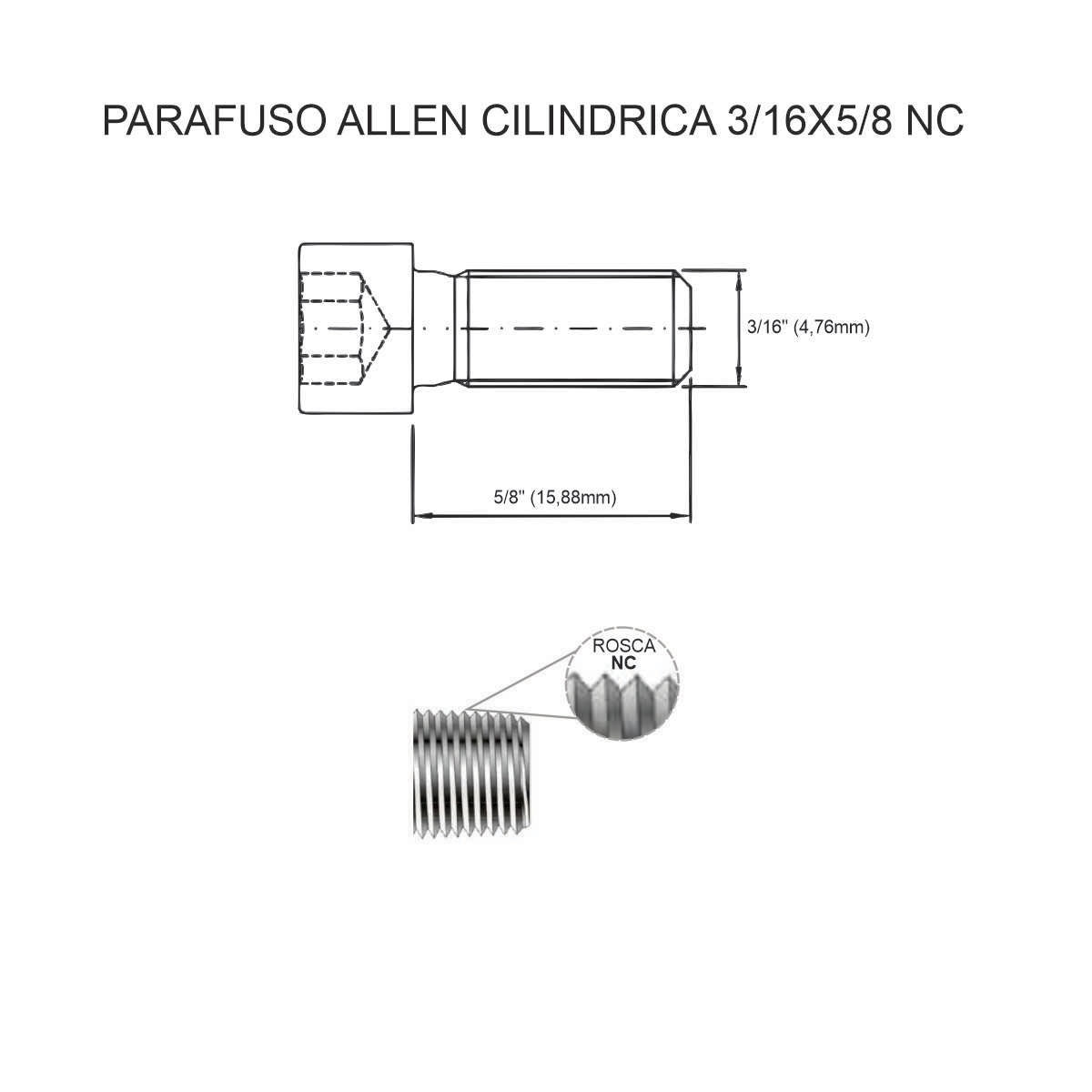 Parafuso Allen Cabeça Cilíndrica 3/16" x 5/8" NC