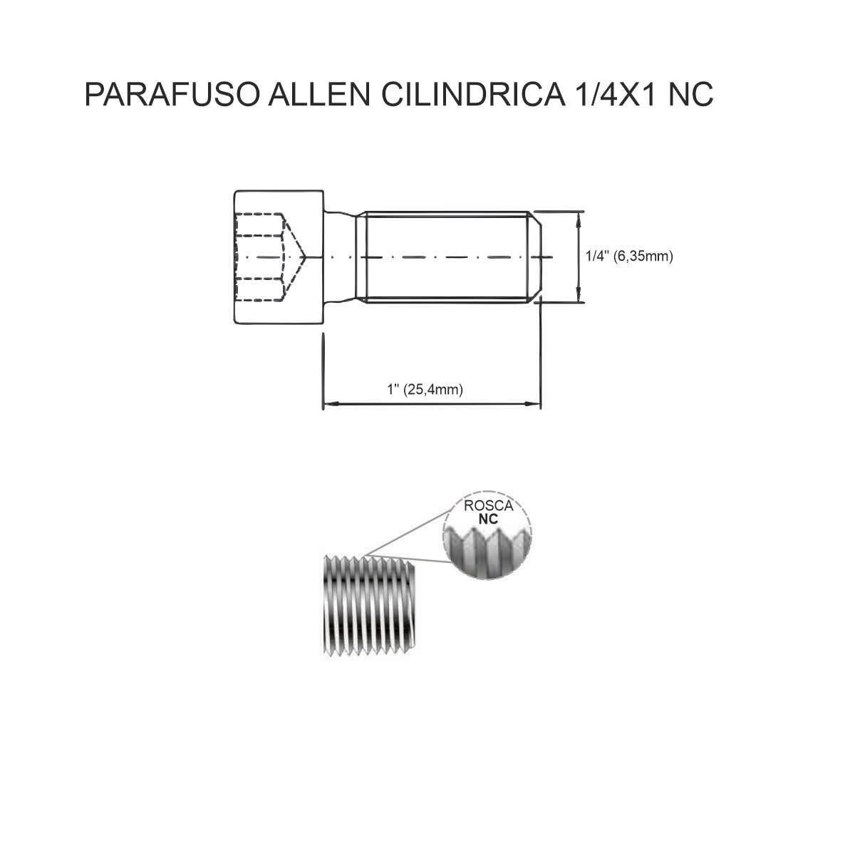 Parafuso Allen Cabeça Cilíndrica 1/4" x 1" NC