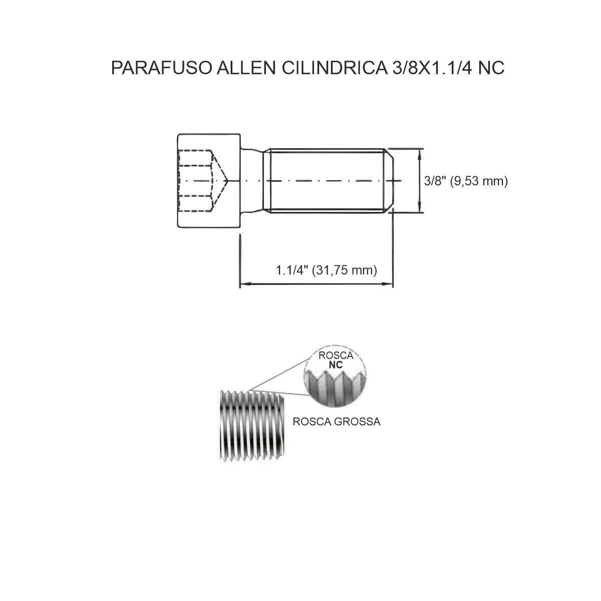 Padrão de rosca: NC – Nacional Grosso (rosca grossa americana)