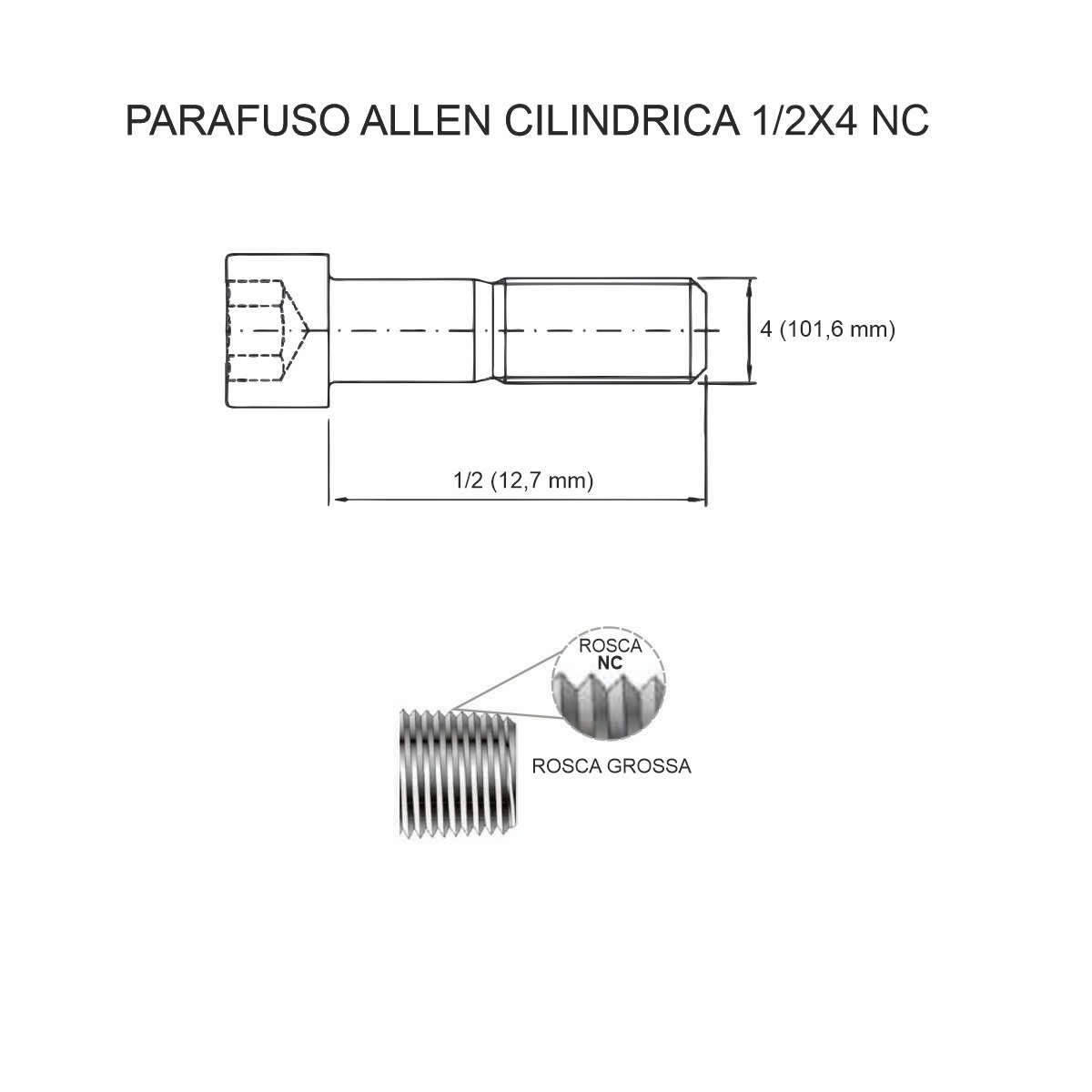 Padrão de rosca: NC – Nacional Grosso (rosca grossa americana)
