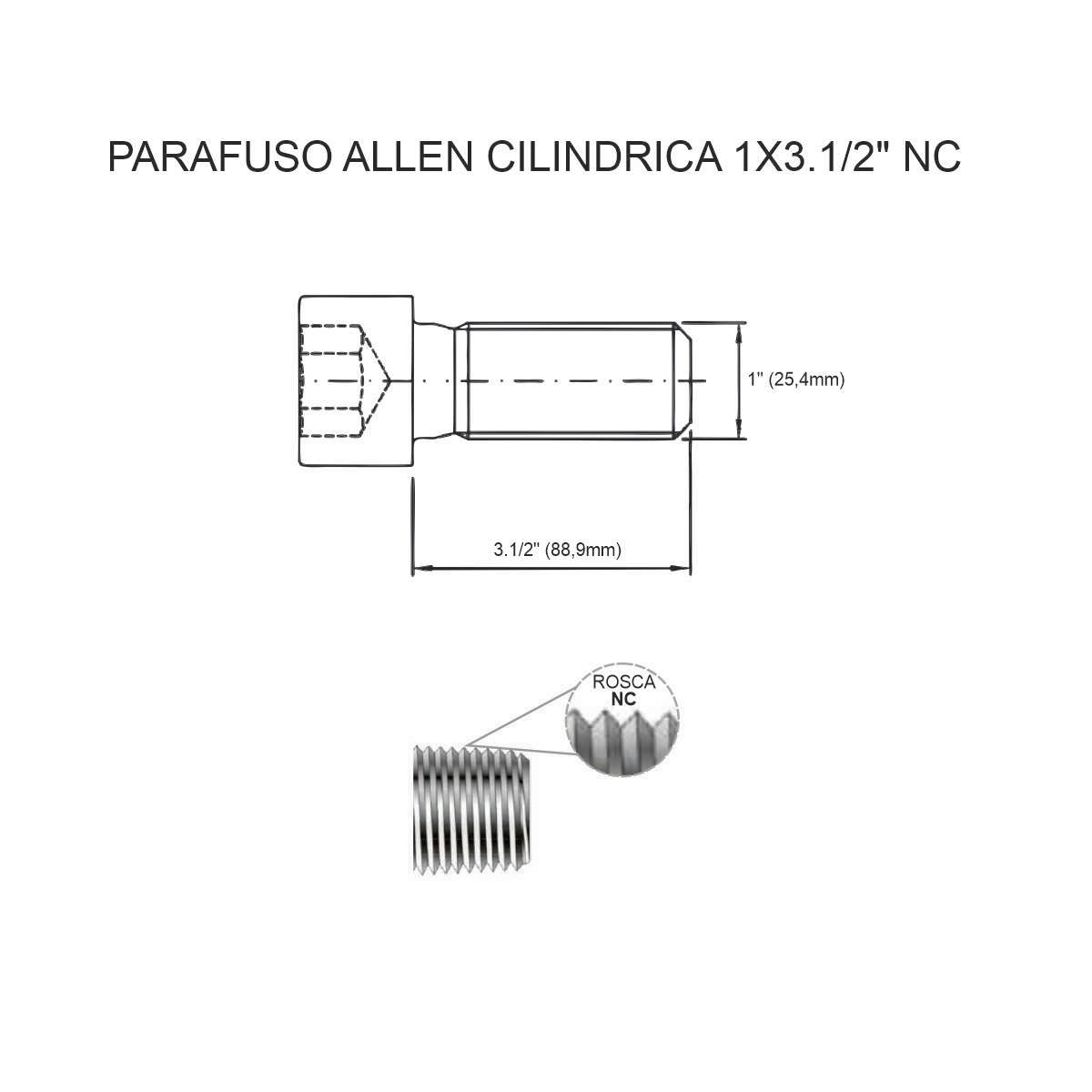 Tipo de cabeça: Cilíndrica (Allen / Sextavado Interno)